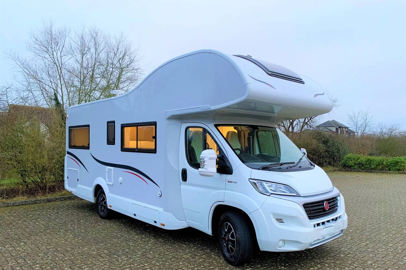 Our beautiful, complete Burstner ixeo 674 semi-integrated camper from 2010 is suitable for 4 people. This camper is 6.74 long and has 2 large width beds. A fixed bed in the back, accessible by 2 steps with lighting. Above the bed a shelf where you can put a glass and a socket to charge your mobile, this part can be shielded by a curtain. Above the seating area is a pull-down bed for 2 people.